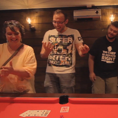 Vous sortez légérement cette carte, sur son dos son écrit « Vous allez tomber sur : ». Vous la replacez dans le jeu et coupez celui-ci.