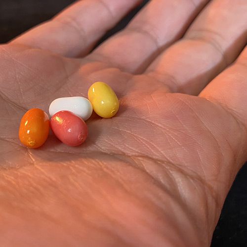 Vous présentez au spectateur une boite de bonbons colorés très populaires (TIC TAC®), et en versez quelques-uns dans sa main. Vous allez dans un instant lui proposer de vivre une expérience unique.