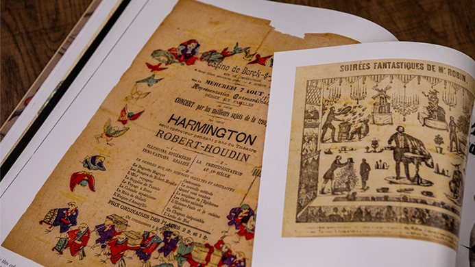 En plus de la profusion d'étonnantes lithographies en couleurs, dont certaines n'ont jamais été publiées auparavant, le livre comprend également des documents éphémères tout aussi rares, allant de partitions musicales mettant en scène des magiciens à des documents et photos uniques sur Houdini. De plus, un chapitre est même consacré aux gravures et estampes emblématiques représentant des artistes jouant avec des coupes et des balles.