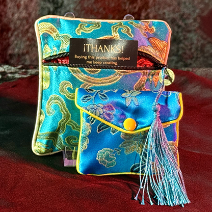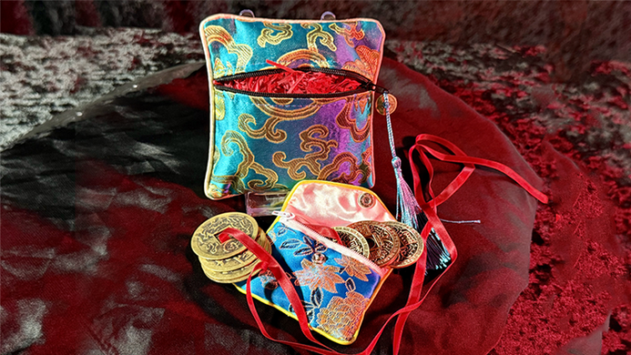 - 2 étuis en soie de style asiatique : un petit (pour les pièces) et un plus grand (pour contenir le jeu et même un jeu de cartes).
