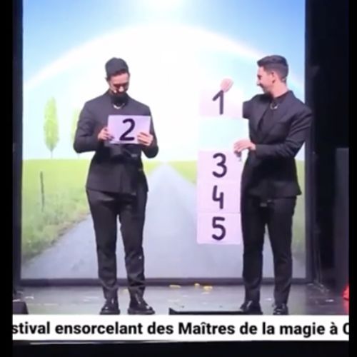 Vous demandez à un participant de choisir l'avenir du monde en affichant 5 planches avec cinq chiffres dessus. Le participant fait sa sélection, et vous révélez au public ce qu'il a sélectionné qui se lit "PAIX", ce qui est bien sûr une bonne chose.