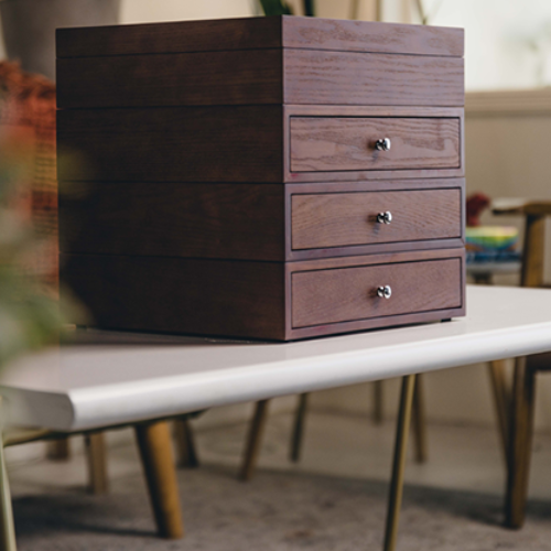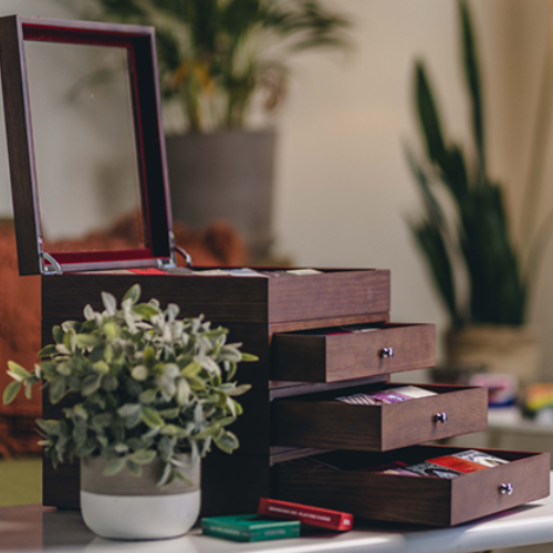 Ce système de rangement en bois, élégant et flexible, a été méticuleusement conçu dès le départ. Sa conception modulaire pratique, associée à une esthétique intemporelle, en fait l'ultime solution tout-en-un pour les collectionneurs, les joueurs de cartes, les magiciens et les amateurs.