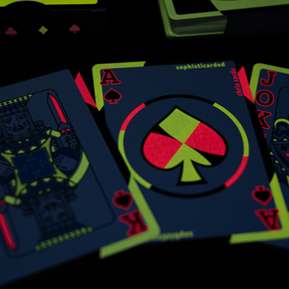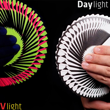 Nous sommes ravis de vous présenter notre dernier joyau - un jeu de cartes qui repousse les limites de l'esthétique visuelle. La quatrième campagne Kickstarter de la série ! L'encre luminescente UV transforme chaque mouvement en une véritable œuvre d'art !