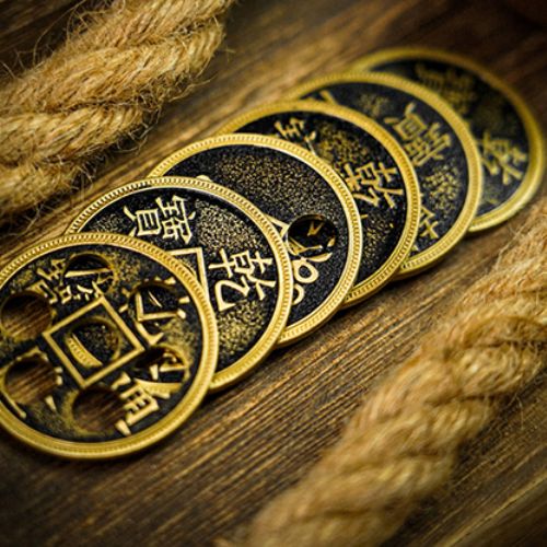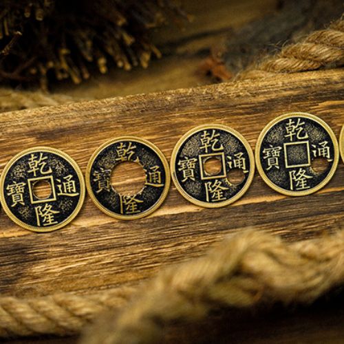 Crazy Chinese Coins est une série d'effets de trous mobiles utilisant les trous de pièces de monnaie chinoises anciennes. Le magicien montre quatre pièces de monnaie anciennes et les trous se déplacent du centre de la pièce vers le bord, sautent d'une pièce à l'autre, ou même dupliquent les trous sur une pièce entière.