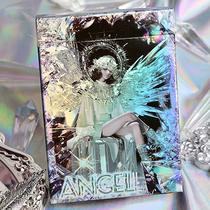 Design inspiré des anges et des cristaux. Brillez d'un éclat supérieur Étui laser + traitement laser sur le recto et le verso des cartes à jouer.
