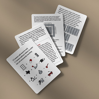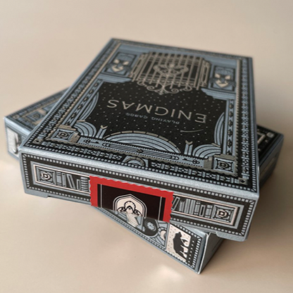 Pour les collectionneurs de cartes : l'édition « Midnight » d'Enigmas présente une nouvelle palette de couleurs saisissante, composée de bleu-gris profond, de noir et de blanc, rehaussée d'encre métallique argentée. L'étui est fabriqué à partir de papier vélin de qualité supérieure, avec une encre noire riche et une feuille d'argent brillante. Bravo à Billy French pour son superbe design !
