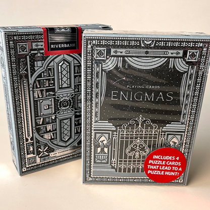 Cartes à jouer ENIGMA de qualité supérieure. Ce jeu unique comprend quatre cartes puzzle très spéciales. Ces puzzles ne sont pas trop difficiles ! Ils vous demandent simplement de sortir des sentiers battus. Du plaisir pour tous les âges !
