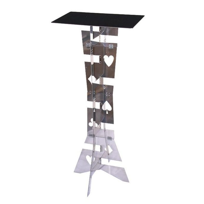 Le magicien marche, un journal sous le bras, vers le milieu de la scène. Soudain, il sort du journal une vraie table, avec quatre pieds. Il l'utilise pour poser ses accessoires de magie et commencer son spectacle.