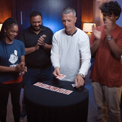 Name Dropper convient aux magiciens de tous niveaux. Il n'y a en fait qu'un seul « mouvement ». Il est non seulement facile à réaliser, mais il se déroule sur un rythme décalé parfaitement chorégraphié. John a même mis au point un accessoire qui se cache à la vue de tous, ce qui vous évite d'avoir à mémoriser quoi que ce soit pour commencer à jouer.