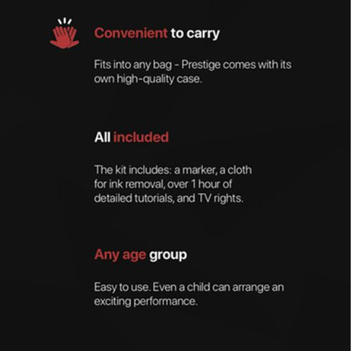 Le Prestige est un best-seller année après année ! Les possibilités sont incroyables, il peut être utilisé pour la scène, la magie comique, provoquer des réactions émotionnelles ou tout autre chose.