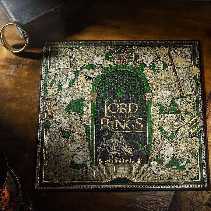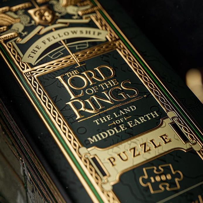 Adapté à partir des illustrations entièrement personnalisées de nos cartes à jouer Le Seigneur des Anneaux, ce puzzle de 1 000 pièces donne vie aux personnages emblématiques et aux références de la série avec un niveau de détail saisissant. Les pièces du puzzle sont ornées d'un mélange élégant de doré et de vert métallisé et sont livrées dans une pochette de transport haut de gamme.