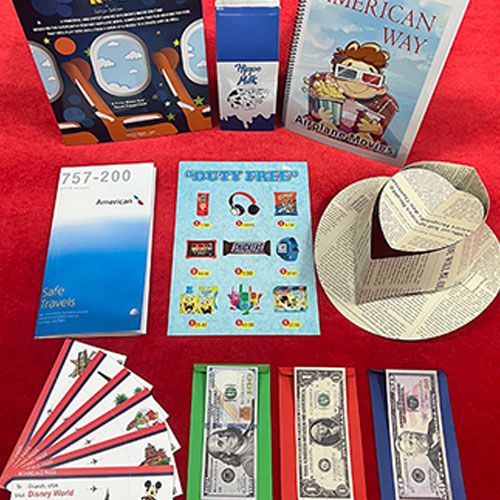 Le magicien présente alors plusieurs cartes d'embarquement avec différents lieux de vacances pour enfants tels que "Disney World", "La Grande Muraille de Chine", "Hollywood", "La plage de Cancun", "La Tour Eiffel", "Machu Picchu", parmi beaucoup d'autres. L'enfant choisit une destination (Disney World) et on lui demande de se souvenir de deux choses seulement, son numéro de siège et l'endroit où il va voyager. L'enfant va maintenant s'asseoir sur une chaise, qu'il imagine être son siège d'avion, s'attacher et se préparer à profiter du vol.