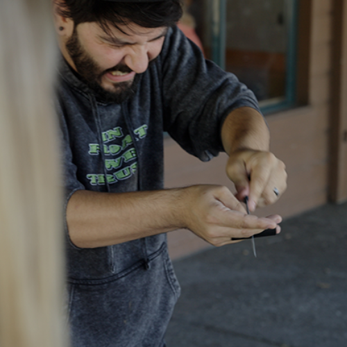 "Parmi tous les tours de cartes, les disparitions de pièces et le mentalisme, je parie que votre public se souviendra d'une seule chose, et c'est le moment où vous vous êtes coupé le doigt. J'adore ça !" - Marc Spelmann