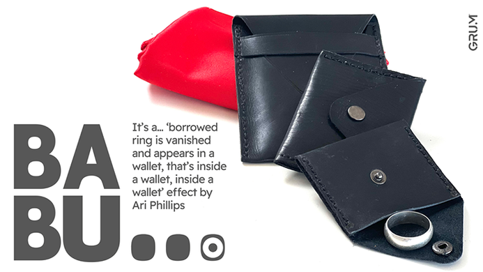 Babu... C'est un... Effet « une bague empruntée disparaît et apparaît dans une pochette en cuir, dans une pochette, à l'intérieur d'une autre pochette » par Ari Phillips.
