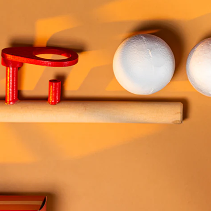Vous commencez par montrer à votre public un jouet classique en bois : un tuyau en bois et une balle en polystyrène. Vous soufflez ensuite dans le tuyau, ce qui fait flotter la balle dans les airs comme par « magie ». Alors que votre public rit, vous attrapez la balle et la tapotez avec le jouet en bois. La balle semble solide, contrairement à la mousse de polystyrène. Vous laissez ensuite tomber la balle sur le sol, surprenant le public lorsqu'un grand « BANG » retentit à l'impact. Ensuite, la balle se transforme lentement en un œuf léger, délicat et VRAI ! Enfin, vous cassez l'œuf dans un verre et observez le public stupéfait par la série d'événements qui vient de se produire !