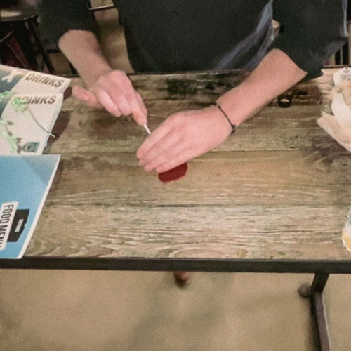 Faites couler du ketchup ou de la sauce piquante sur la table, puis trempez-y un bâton qui se transformera en sucette.