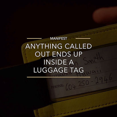 IDEAL pour le magicien moderne qui recherche une magie où le spectateur n'a rien à toucher. En posant des questions, vous êtes en mesure de révéler une destination, un nom et un numéro de téléphone à l'intérieur d'une étiquette de bagage scellée.