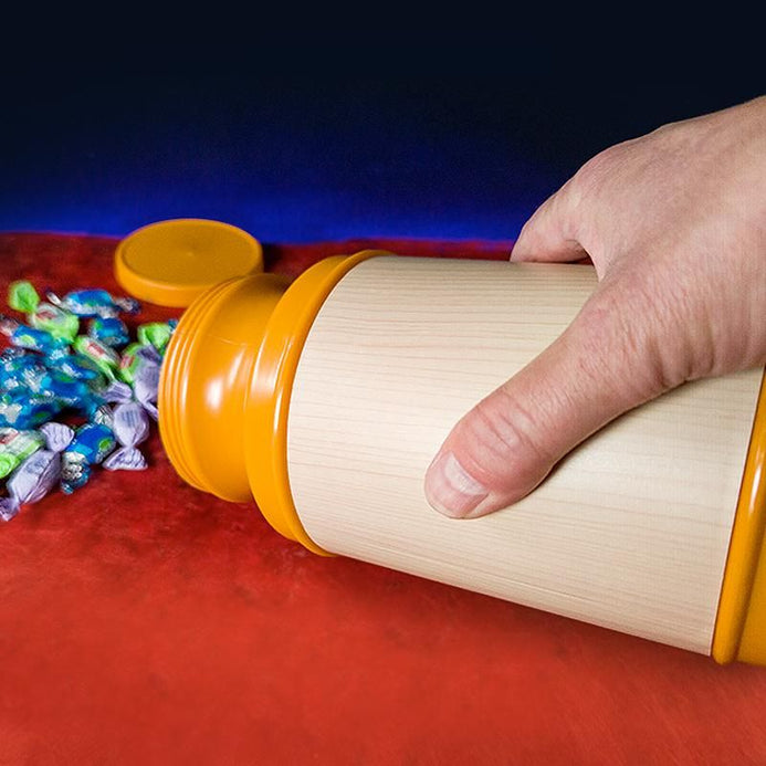 Le magicien montre un bocal, ouvre le couvercle et le montre vide. Il verse des grains de maïs dedans et ferme le couvercle. Puis il commence à secouer le bocal et ouvre le couvercle : on découvre que le bocal est rempli de pop-corn !