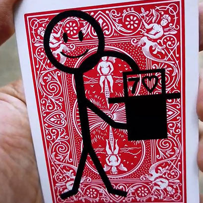 Très simple, directe, facile à utiliser et reset en quelques secondes. Le spectateur choisit une carte, le 7 de coeur, vous dessinez ensuite votre assistant au dos d'une autre carte avec la main plongée dans le chapeau. Lentement, votre dessin s'anime et le magicien sort la carte choisie du chapeau, un vrai moment de magie ! La carte avec le dessin au dos peut ensuite être laissée à l'examen.