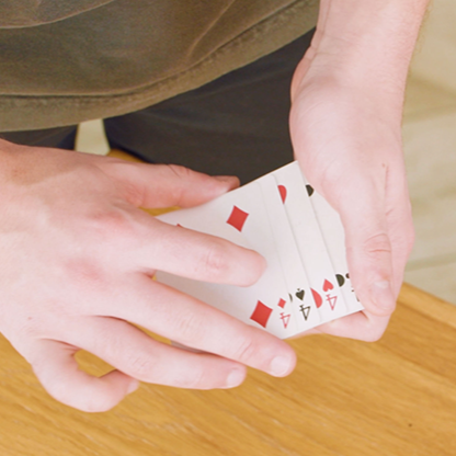 Il s'agit d'une main qui permettrait de gagner la plupart des parties de poker. Mais ce n'est pas suffisant pour un magicien. Pour terminer en beauté, vous transformez cette main en une quinte flush royale en un clin d'œil. Ils n'en croiront pas leurs yeux.