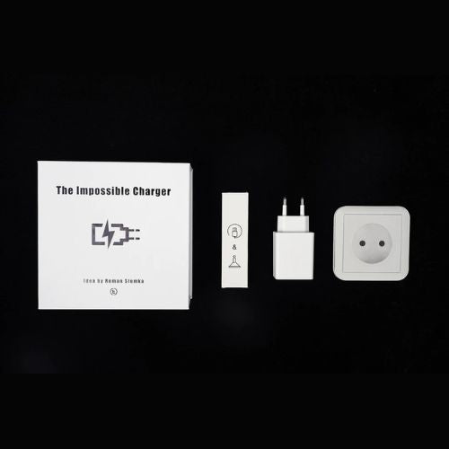 Le téléphone se recharge à partir d'une prise murale simulée sur n'importe quelle surface plane ! C'est le chargeur impossible. Lorsque vous insérez la broche, elle active l'illusion de la charge, et lorsque vous la relâchez, la charge s'arrête. Vous pouvez l'attacher à divers objets tels qu'un livre, une tasse, un jeu de cartes ou même votre tête. Il se colle automatiquement à toute surface attirant un aimant. Grâce à sa taille compacte, identique à celle d'un chargeur classique, vous pouvez facilement le transporter dans votre poche ou votre sac.