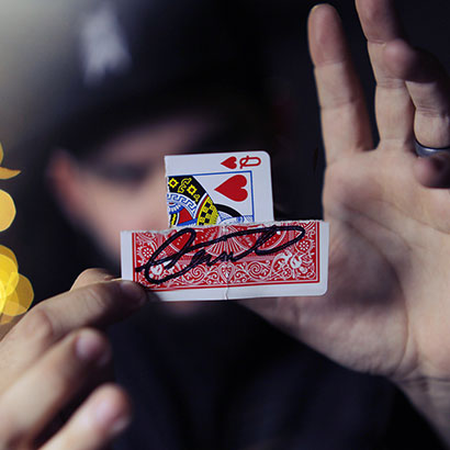 Vous déchirez une carte, vous recollez un des morceaux d’une manière impossible. Mais ce n’est pas tout ! Vous vous concentrez sur la carte et le morceau réparé glisse à vue sur la carte pour atterrir en plein milieu de celle-ci ! La carte est dépliée, elle forme un objet impossible que vous pouvez désormais offrir au spectateur en guise de souvenir !