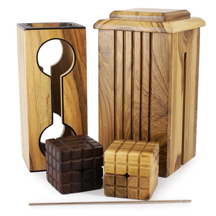 Il claque des doigts, frappe le couvercle et lorsqu'il l'enlève, tout le monde voit que le bloc captif est maintenant libre, tandis que l'autre est emprisonné dans la barre !