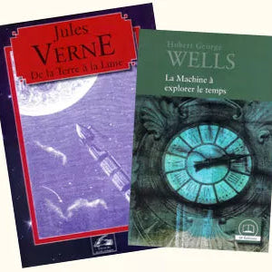 Pour ne pas éveiller les soupçons des spectateurs se sont deux livres très communs qui vous sont ici proposés, « De la Terre à la Lune » de Jules Vernes et « La Machine à Explorer le Temps » de Hubert Georges Wells.