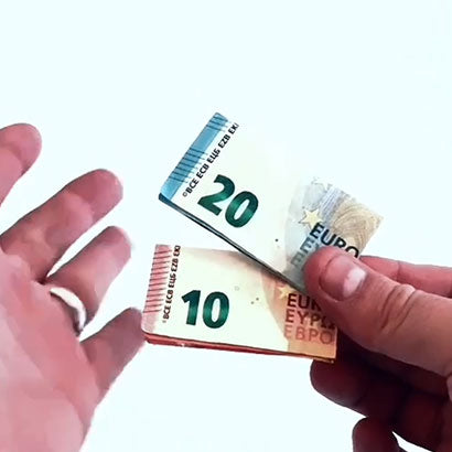 Placez un billet dans chacune de vos mains et invitez votre spectateur à trouver le billet de 20€ pour le gagner...