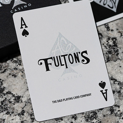 Imprimé sur du papier CRUSHED IVORY 37 par l'USPCC, produit par le duo légendaire Dan & Dave. Ils sont scellés avec un sceau ACE FULTON'S SILVER METALLIC LIMITED EDITION embossé et pressé à San Diego, CA.