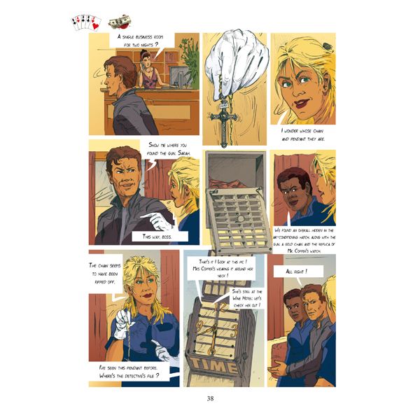 En plus d’être un book test, vous aurez en main une véritable bande dessinée et vous pourrez lire l’histoire racontant une enquête dans une ville imaginaire inspirée de Las Vegas.