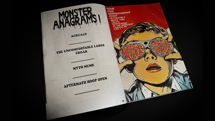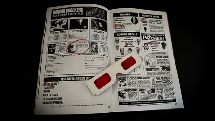 Avec l’aimable autorisation de John, les pages de publicités de la bande dessinée peuvent être utilisées pour réaliser une variante de son « Baby Book Test ». À l’aide de monstres classiques, vous pouvez dire à un participant à quel monstre il pense, parmi huit pages de publicités, dont beaucoup comportent plusieurs annonces par page ! Quiconque connaît le travail de John sait que cette méthode a berné Penn et Teller, et la clé que j’ai mise en œuvre ici est ridiculement facile à apprendre.