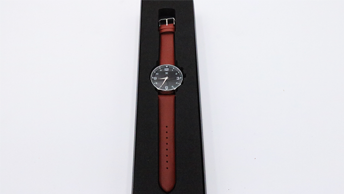 Elle est dotée d'un bouton qui ressemble à une couronne, mais qui ne sert à rien. Vous pouvez faire semblant de le tirer et demander au spectateur de « régler l'heure » pendant que vous forcez une heure prédéfinie.