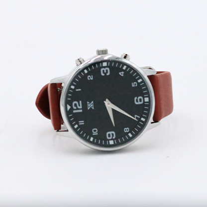 • Noir Silver Three : boîtier argenté brillant, cadran noir avec chiffres (1-12), logo, bouton couronne et deux boutons.