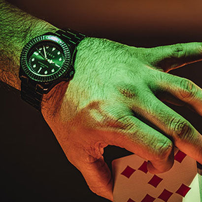 THE STACK WATCH est le premier anti-mémoire au monde à être porté pour le travail de chapelet dans la magie des cartes.