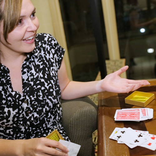 Le spectateur distribue les cartes face visible et s'arrête où il veut. Il ouvre lui-même le paquet-cadeau et en retire la prédiction qu'il contient. La prédiction sera TOUJOURS correcte !