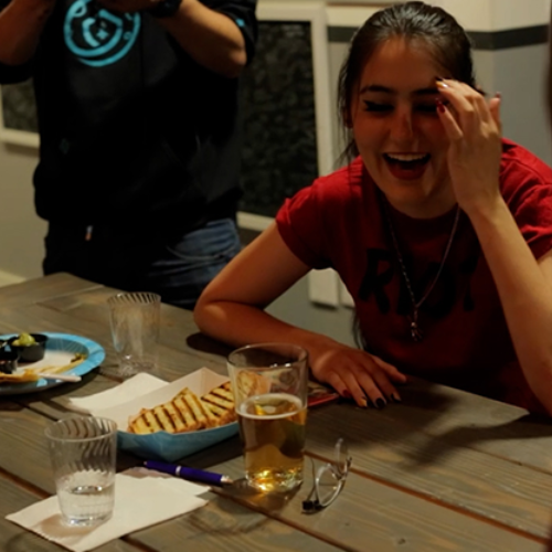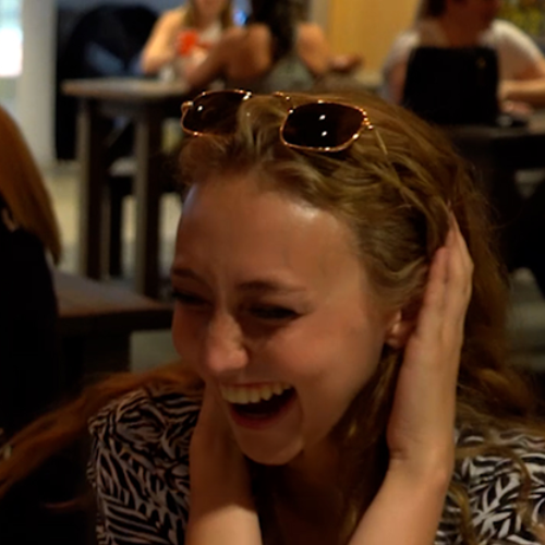 Le public mélange un jeu de cartes et en tire cinq au hasard.
