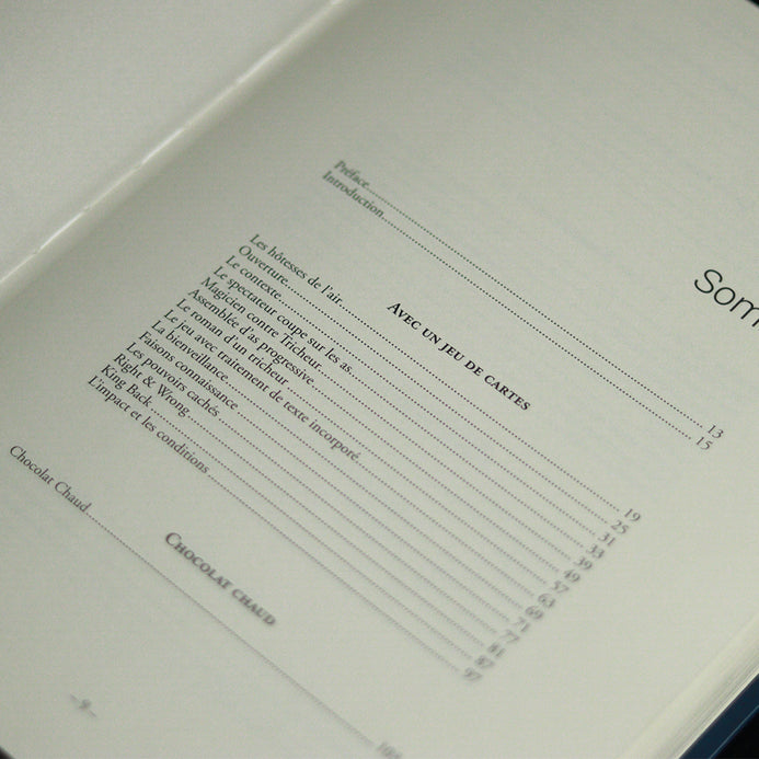 Vous y trouverez, entre autres, des effets avec : des billets de banque, de la bière, des chaussettes, des enveloppes, des DVD, des tasses à café, des paniers, des boîtes, des bagues empruntées, des effets d'ombre, des morceaux de papier, des livres de poche, un tableau d'affichage, une boîte en verre, une baguette, un crayon et même de la guimauve... En plus, bien sûr, des sublimes tours de Cartes et de Pièces de monnaie.