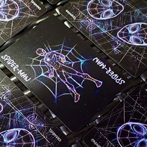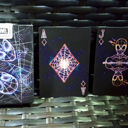 Les cartes à jouer Avengers Spider-Man Neon utilisent un design en néon lumineux.