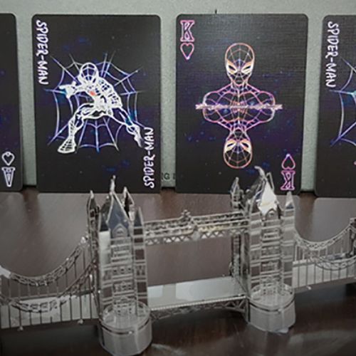 Les index des Rois, Dames et Valets ont été conçus pour inverser l'image, et le Joker présente un personnage complet de Spider-Man judicieusement placé pour créer un design percutant.