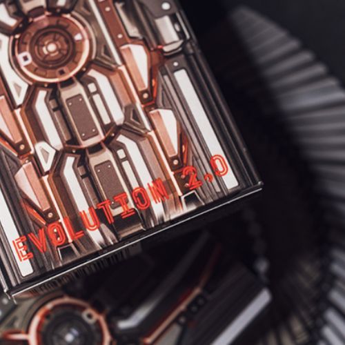 À travers les dos des cartes Evolution 2.0, enfoncez les portes électroniques en acier rouge, blanc et gris vers un monde de possibilités. Les couleurs contrastées et le design linéaire y entourent le centre comme un arachnoïde numérique.