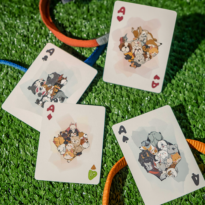 Chaque carte de ce jeu est plus qu'un joli visage. Les indices (pips) sur chaque carte sont astucieusement intégrés dans l'illustration globale, créant un design homogène et ravissant. Cette caractéristique de transformation garantit que la personnalité espiègle de chaque chien brille à travers, faisant de chaque carte un régal visuel. Qu'il s'agisse de friandises en forme de cœur ou d'empreintes de pattes en forme de pique, vous trouverez des détails charmants qui rendent ce jeu vraiment unique et agréable à explorer.