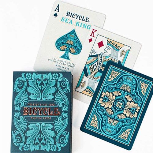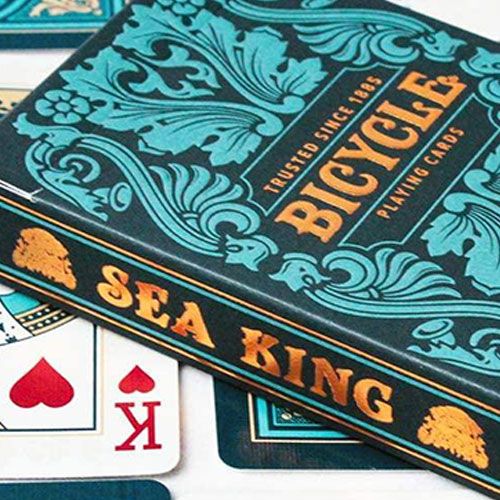 Avec les cartes à jouer Bicycle® Sea King, donnez la main à vos amis pour découvrir les bleus et les sarcelles richement détaillés du dos et des visages des cartes ! Combiné à un étui doré et gaufré, ce jeu est vraiment digne d'un roi !