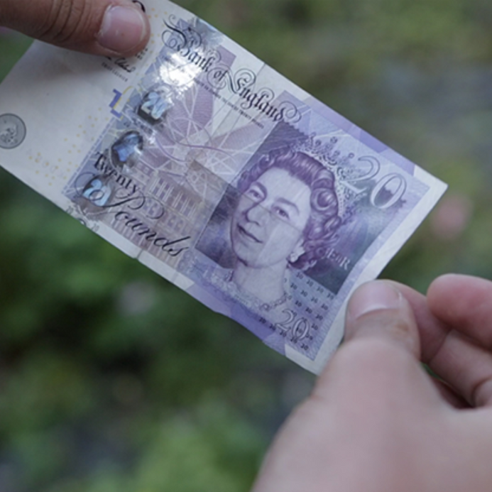 Toutes les devises peuvent être utilisées. Les billets de n'importe quelle couleur, taille ou matière fonctionnent.