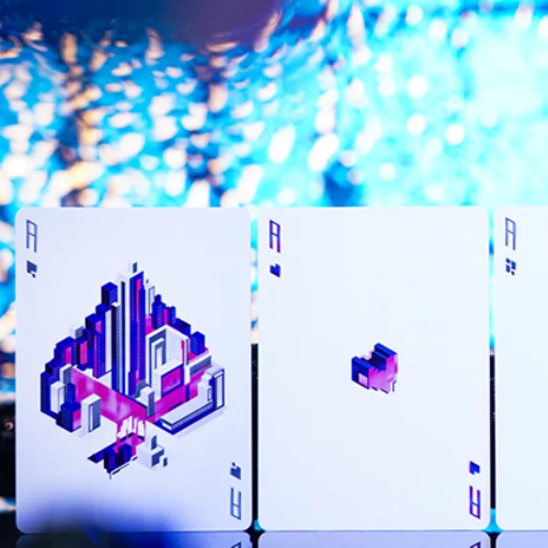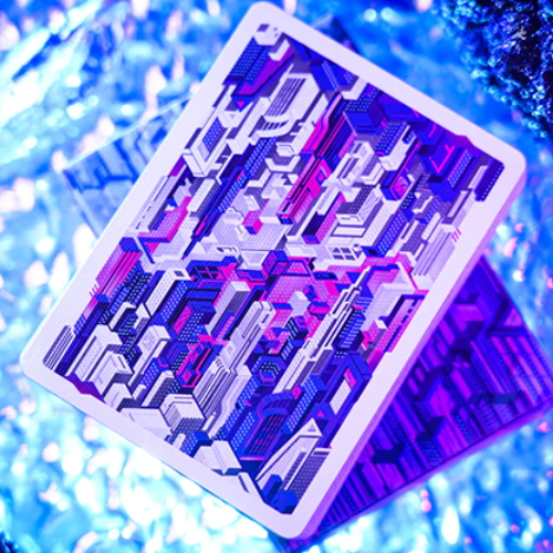 Plongez dans l'univers cyberpunk avec ces cartes à jouer, où le paysage urbain et les merveilles technologiques convergent en un spectacle fascinant.