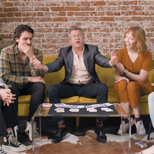 Il est maintenant temps pour tout le monde de vous rejoindre dans une aventure à Crazy Town... Les cartes rouges sont réparties en quatre petits paquets que les participants peuvent mélanger et couper. Ils peuvent même mélanger ou couper les paquets des autres si vous le souhaitez.