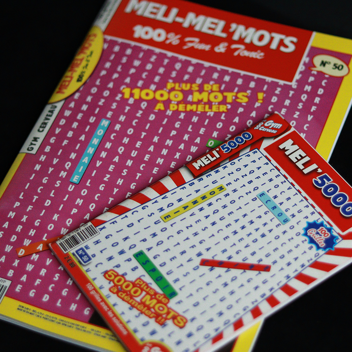 - Deux revues de 100 pages chacune de mots mêlés conçus spécialement pour ce "MOTS MELES TEST" (précision : lors du lancement du tour, celui-ci était fourni avec 3 revues, seules 2 sont désormais disponibles).