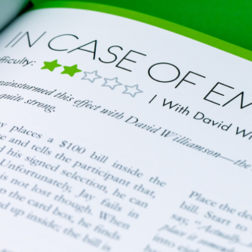 Intéressé par les tours avec des billets empruntés ? Il y en a plus de 30 ! Vous préférez le mentalisme ? Des chapitres entiers y sont consacrés, ainsi que des sections complètes sur d'autres sujets populaires comme la magie avec des élastiques, des pièces de monnaie, des billets, des bagues de doigt, la magie de restaurant, la magie de bar, et bien plus encore. Jay a même inclus son chef-d'œuvre de théorie magique Beyond Secrets pour vous aider à améliorer vos compétences globales en matière de performance.