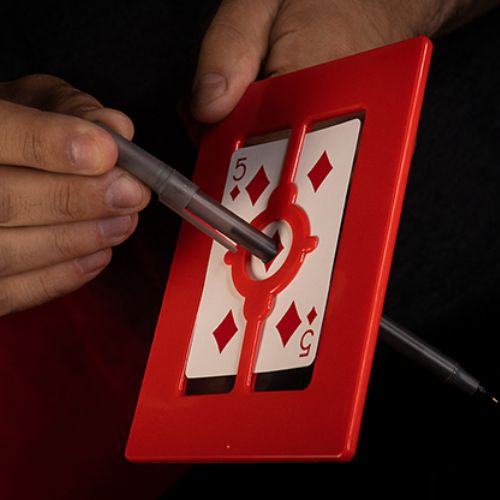 Dans cette version, vous affichez une porte solide et vous emmenez votre public dans la CINQUIÈME DIMENSION ! Vous allez dans le futur, le passé et le présent EN MÊME TEMPS ! Vous prenez une carte à jouer et la placez dans la porte , puis vous prenez un stylo ou un crayon et l'enfoncez dans la PORTE  ET EN CARTE ! Vous sortez ensuite la carte de la porte en verre et vous montrez que la carte a été perforée alors que la porte en verre n'a subi aucun dommage ! TOUT peut être inspecté AVANT ET APRÈS le tour !