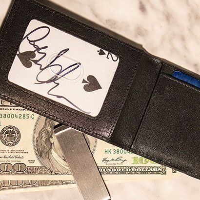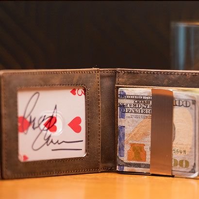 Dans la vidéo d'instructions, Brent vous guide à travers les caractéristiques du portefeuille, les multiples façons de le configurer et de le charger, et vous apprend à manipuler dans le monde réel la carte signée pour le portefeuille. La routine de Gregory Wilson, où un permis de conduire (format carte de crédit) emprunté apparaît à l'intérieur de votre portefeuille, est également incluse.